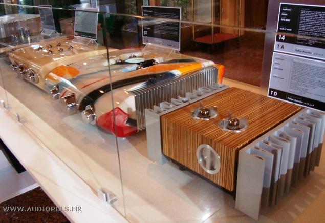 Na tandovima ste mogli razgledati mnogo toga. Mnogi proizvodi su se borili za "Top Audio Design Award". Među njima je i talijanski gramofon Giradischi HORO WJE68 gramofon, koji je - kako se kasnije pokazalo - bio dio uvjerljivo najboljeg sustava na sajmu. Kao to vidite i na fotografiji iznad, iza gramofona se nalazi bankomat, a čime se jasno sugerira da Vas samo jedna posjeta bankomatu dijeli od posjedovanja ovog gramofona. Ne znam o kojoj cijeni se radi, ali pretpostavljam da ovaj gramofon nije jeftin.