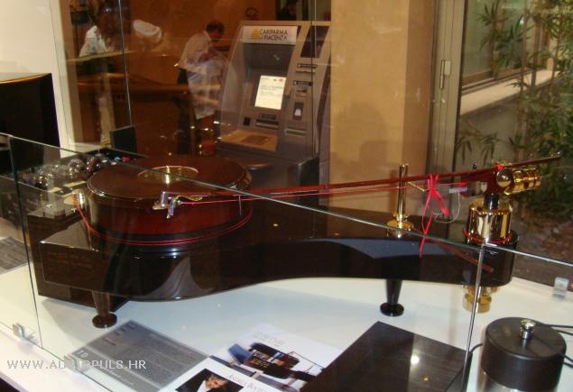 Radi se o gramofonu koji ima tijelo velikog koncertnog klavira, dok gramofonska ručka izgledom ascocira na gudalo. U usputnom razgovoru sam doznao da motor ovog gramofona tei 40 kg. Na svakom milanskom sajmu zadnjih godina sam primjećivao ovaj gramofon i svaki put sam bio pomalo indiferentan prema njemu (valjda jer sam smatrao da ima kičast dizajn), sve dok ga ove godine nisam čuo u jednom od sustava i umalo pao sa stolice. Ali o tome kasnije...