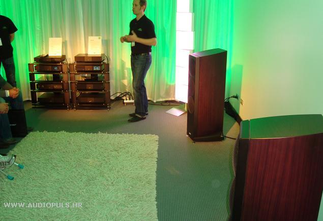 Zvuk je odrezan u basu, ali - začudo - sve ostalo je vrlo vrlo korektno. Zvuk sustava je na otvorenijoj strani, ali nita nije otro. Daleko od savrenog zvuka, ali zvuk ovog sustava bih mogao opisati kao najintrigantniji i najsimpatičniji zvuk na sajmu.
