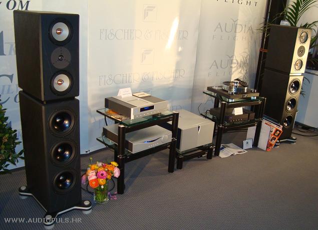 U idućoj sobi sam naletio na sustav koji čine talijanska Audia amplifikacija i njemački Fischer&Fischer zvučnici oznake SN/SL 770 (cijena 25.000 EUR/par, radi se o zvučnicima koji imaju ugrađen Dynaudio Esotar visokotonce).