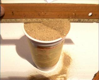 dok se ne stvori površina pijeska koja će biti u ravnini s rubom čaše. U
