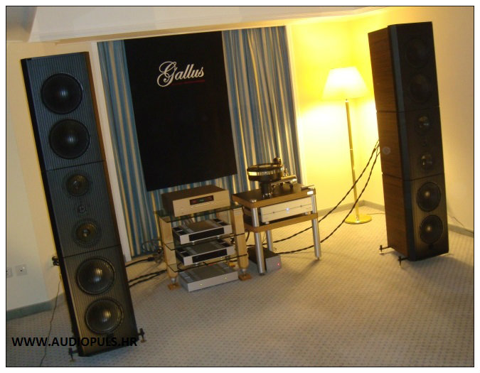 Slovenske firme Gallus Audio, ESL Audio i SM Design imaju ovaj sustav: Gallus The Loudspeaker zvučnici, ESL The first One izlazna pojačala (komada dva u bi-amp modu), ESL baterijsko pretpojačalo i SM Design Primus gramofon. Total vrijednost sustava: cca 58.000 EUR (bez kabela).
