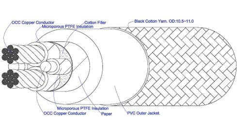 izmedu vodiča ispunjen pamukom. Dakle, imamo dva vodiča od 7 bakrenih pletenica
